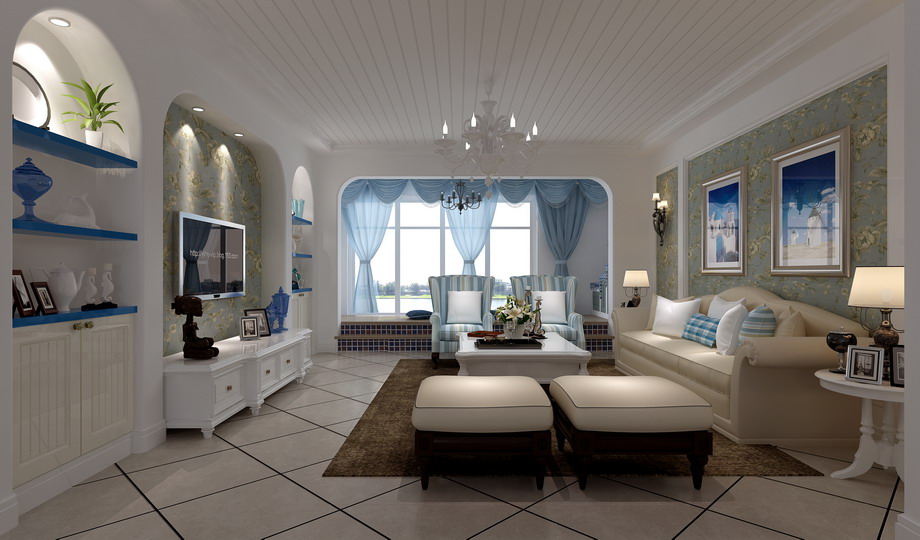 6.5万精装江南山水135㎡蓝色地中海三居