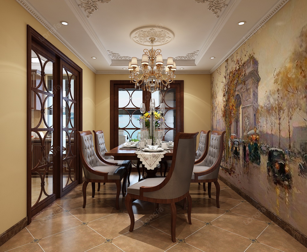精细考究的吊顶和墙面诠释了浪漫优雅的礼仪。