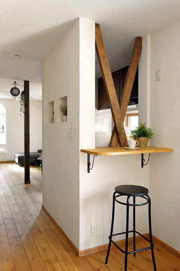 装饰Tips:小角落的装饰有大智慧。靠近厨房的一个小角落里,木板打造出一个小的休闲区域,温馨简单。黑色的金属高凳子,灵活大方的样式,仿佛酒吧中的高脚椅子,欧式浪漫气息浓郁。木板上,一个白色的茶杯,搭配清新亮丽的绿叶植物,又给整个空间增添了无尽的自然之感。