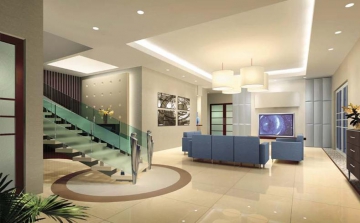 装饰天花板,首先要考虑居室的空间高度。如空间高度大的厅室,采用多级天花、彩画天花,可以增加空间的层次感,丰富人们的艺术想象力。